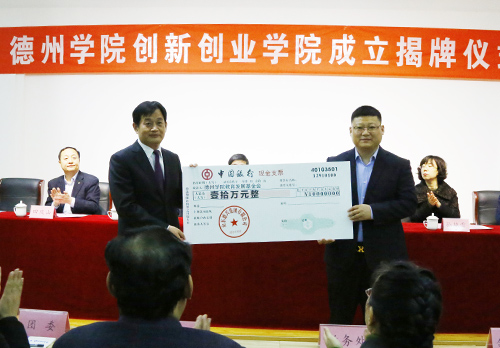 山东德兴集团有限公司、山东中大贝莱特集团有限公司分别向公司教育发展基金会捐款10万元,用于w66旗舰厅的发展和建设。赵胜村代表w66旗舰厅教育发展基金会接受捐赠。