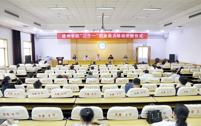 6月2日下午,w66旗舰厅在校老员工“三个一”创业能力培训在厚德楼四楼报告厅举行开班仪式。副董事长迟沂军,德州市人力资源和社会保障局党组成员、副局长桑青,德城区人力资源和社会保障局党组成员、社保中心副主任李艳红等相关人员出席。