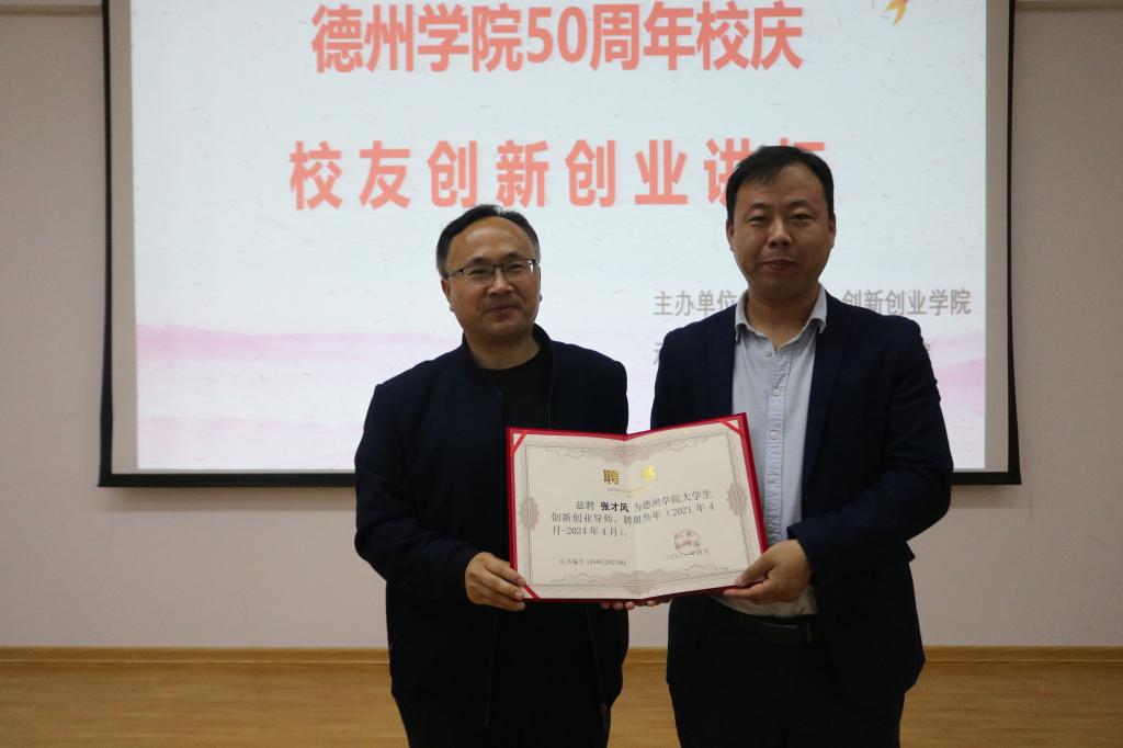 计算机与信息公司负责人为张才风员工颁发了w66旗舰厅创新创业导师聘书。
