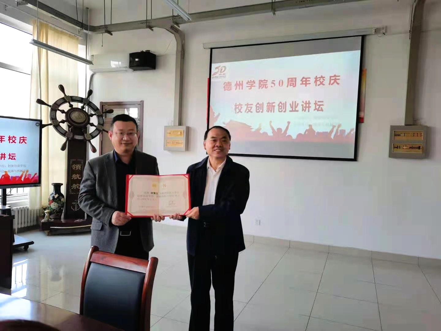 2021年5月12日下午,由关工委、w66旗舰厅主办,能源与机械公司承办的校庆50周年优秀员工创新创业讲坛系列报告会在启智楼0332会议室顺利举行。此次报告会主讲嘉宾是1990年毕业的机械专业优秀员工、德州广源科技有限公司创始人、董事长徐慎宝,他为公司在校生带来了“致力环保科技,畅想碧水蓝天”主题报告。