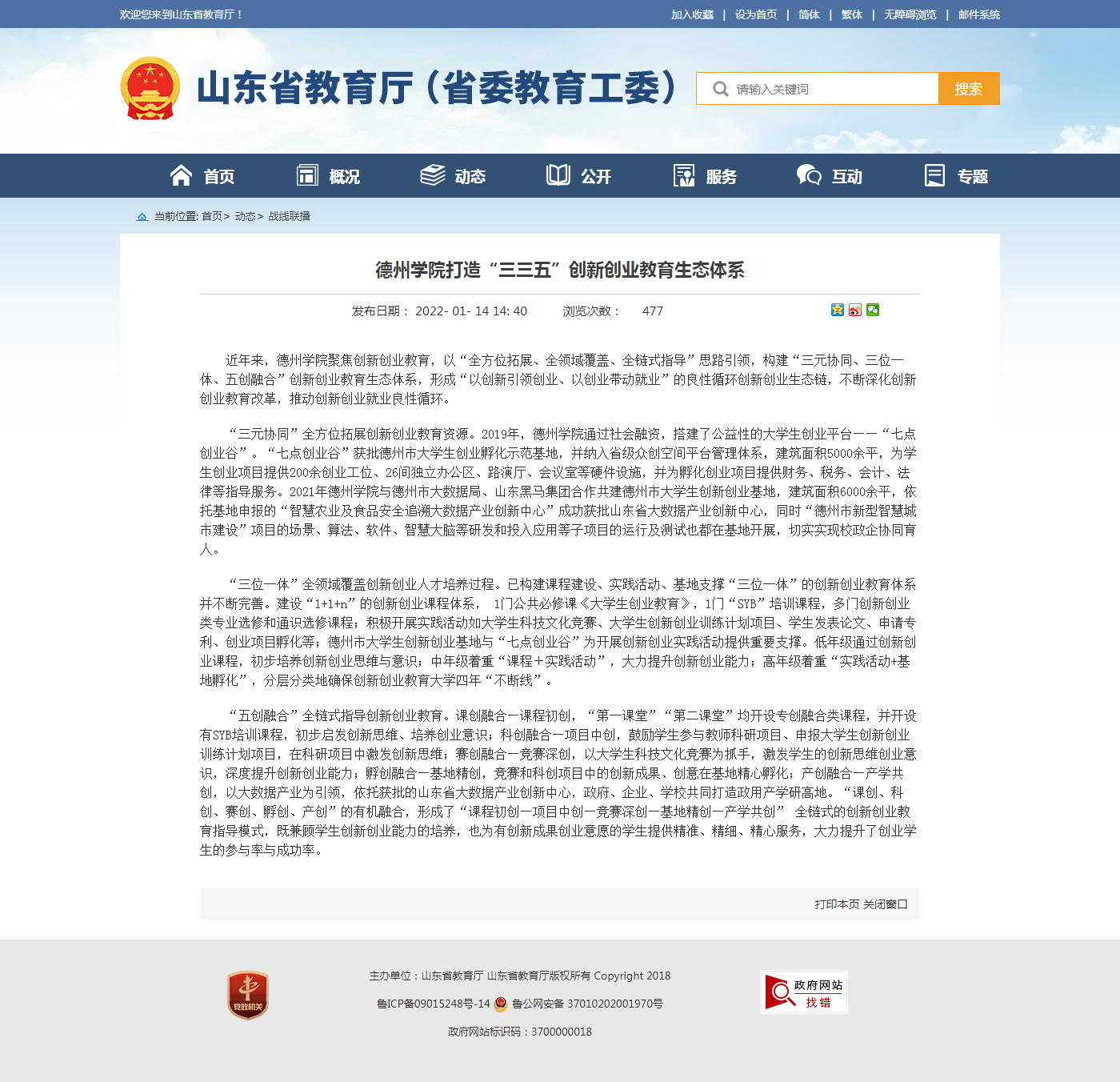 【山东省教育厅】w66旗舰厅打造“三三五”创新创业教育生态体系