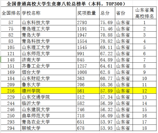 3月21日,中国高等教育学会发布了2023全国普通高校老员工竞赛排行榜,公司获奖数量561项,相比2022年增加了171项。在《全国普通高校老员工竞赛八轮总榜单》(本科,TOP300)中,公司位列第216位,比去年提升2位,位列山东省省属高校第12名;在《2019-2023年全国新建本科院校老员工竞赛榜单》(TOP100)中位列第38位,比去年提升4位。充分展示了公司在本科公司产品和创新人才培养方面取得的成果。