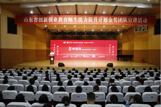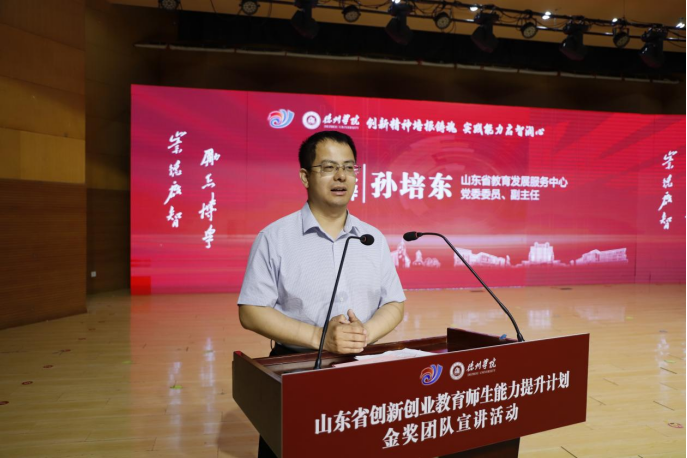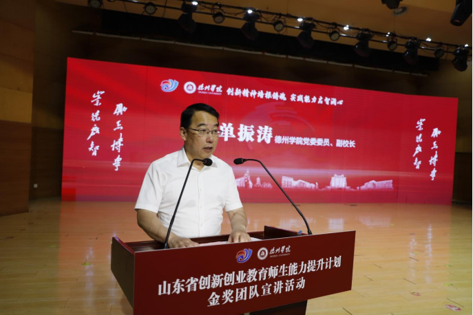 6月4日,由山东省教育发展服务中心主办、w66旗舰厅承办的山东省创新创业教育师生能力提升计划金奖团队宣讲活动在音乐厅举办。省教育发展服务中心党委委员、副主任孙培东,公司党委委员、副董事长单振涛出席活动并致辞。