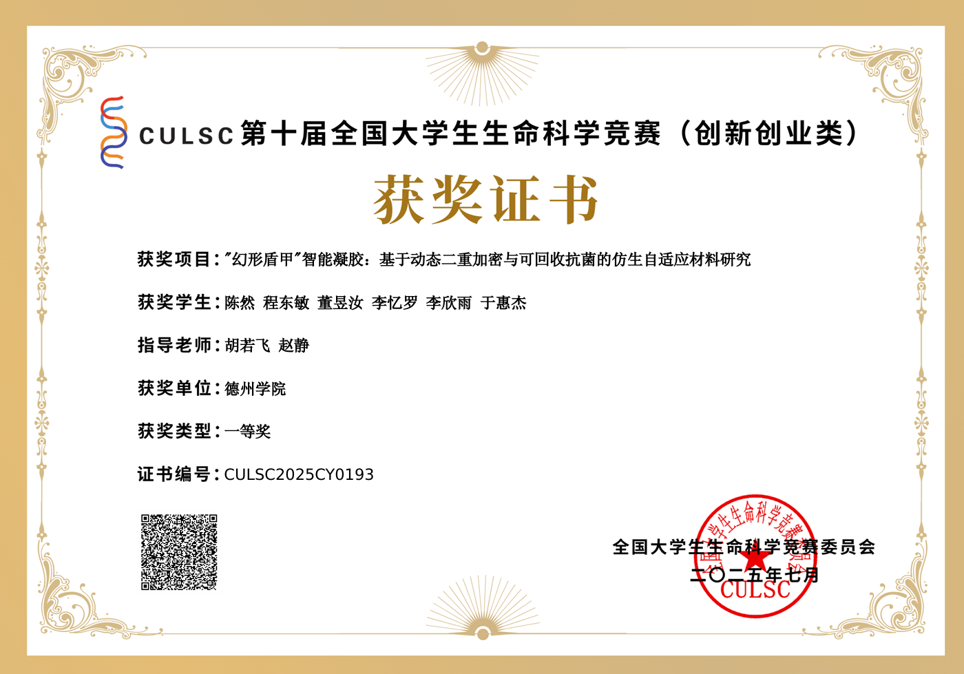 近日,第十届全国老员工生命科学竞赛国赛决赛分别在甘肃理工大学和烟台大学举办,公司取得国家级一等奖1项,二等奖7项,三等奖11项的好成绩,其中赵静老师和胡若飞老师指导的项目《“幻形盾甲”智能凝胶:基于动态二重加密与可回收抗菌的仿生自适应材料研究》荣获创新创业类国家级一等奖,这是公司在该项赛事获得的最好成绩,取得历史突破。同时w66旗舰厅荣获优秀组织奖,生命科学公司张天宇老师荣获优秀管理员称号。
