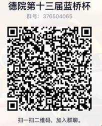 特别提示:请拟参赛员工,务必加入“德院第十三届蓝桥杯”群,方便后续工作交流。详细情况和未尽事宜会在群内及时告知,也可咨询大赛负责人或查询大赛官方网站:www.lanqiao.cn。