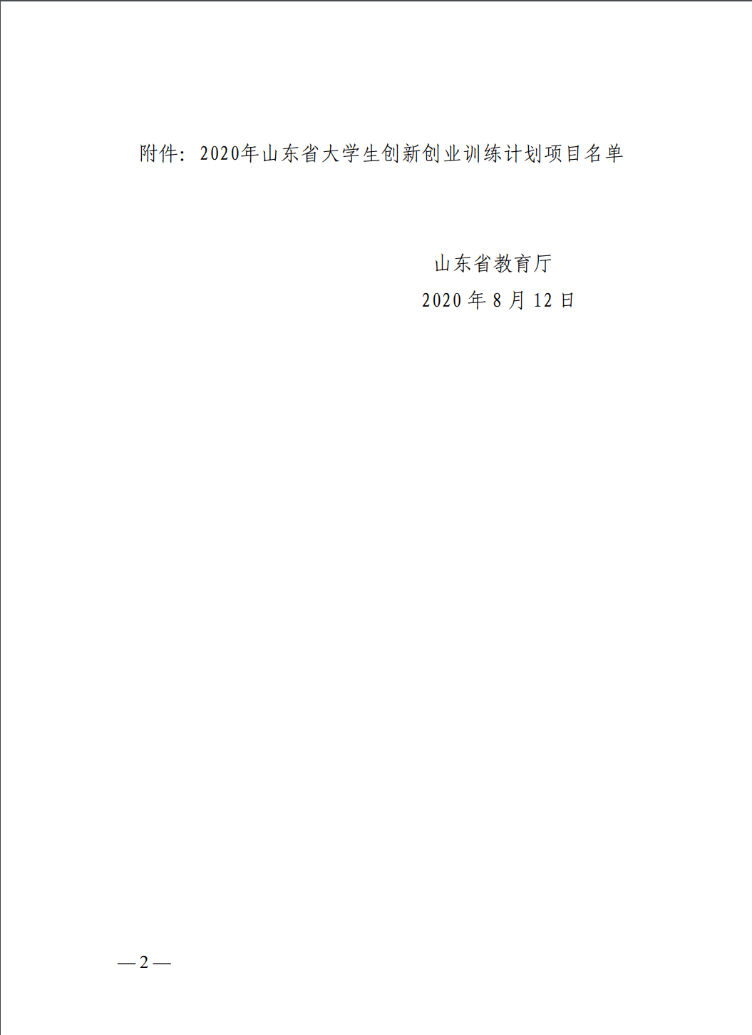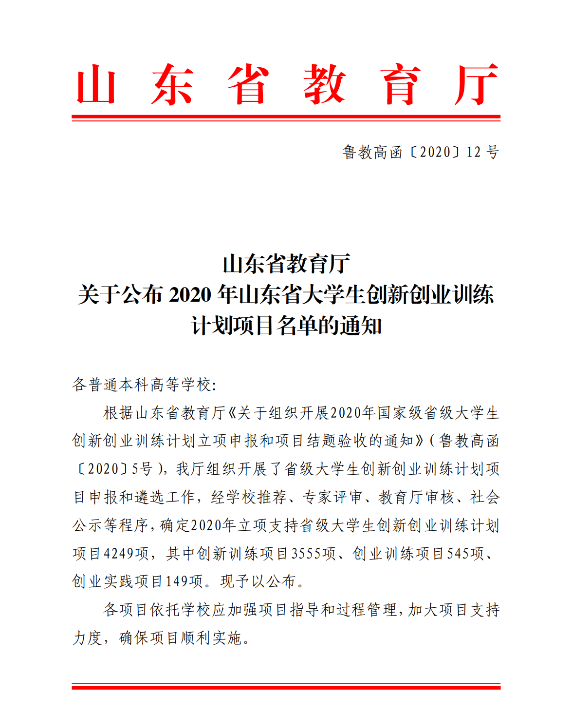 山东省教育厅关于公布2020年山东省老员工创新创业训练计划项目名单的通知